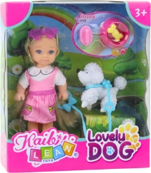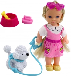 The mini doll with a dog is an ideal gift for children who love to play different roles and develop their imagination. The doll has long blonde hair and a charming appearance, ensuring hours of fun. The dog comes with a blue leash, allowing children to simulate walks, feeding, and playing with a pet.