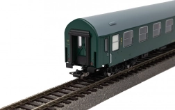 This passenger car, a 2025 novelty, represents a great choice for H0 scale model railways. It features precisely set windows, offering an unobstructed view into a finely detailed interior. Key advantages include easy integration thanks to the NEM pocket and short coupling.