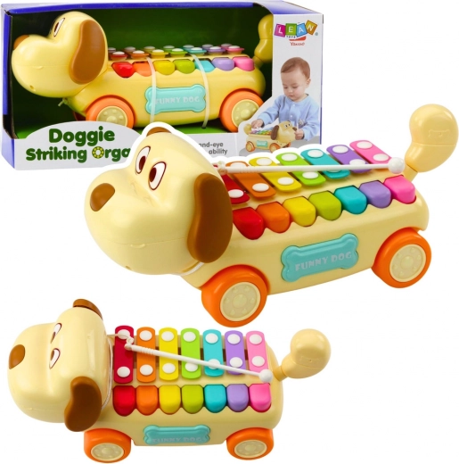 Rolling Dog with Colorful Cymbals is a charming and functional musical toy that combines educational, movement, and sensory elements. It encourages children to play actively and allows them to play simple melodies.