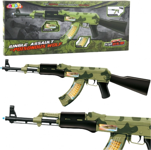 This military carabiner in a colorful camouflage design with intricate details reminiscent of a real weapon, stands out not only for its appearance but also for its impressive length – a full 70 cm. Once switched on, the carabiner activates light effects and vibrations that enhance the realism of the game, allowing players to fully immerse themselves in the role of a soldier.