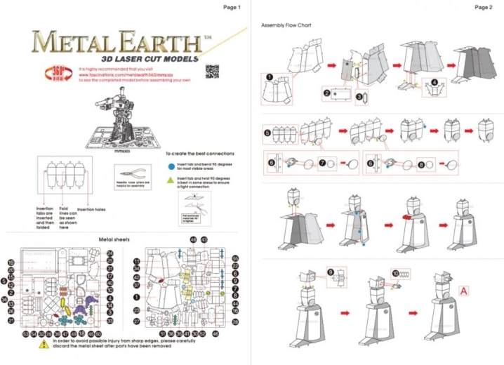 You use metal sheets with detailed parts for assembly. No special tools are needed except for small pliers.
