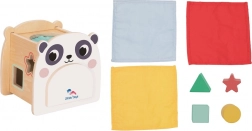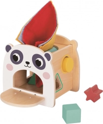 Motor Skills Cube Panda by 2Kids Toys is a wooden toy inspired by Montessori toys, combining fun with learning. Children enjoy a set of fabric handkerchiefs that can be easily pulled out and put back, promoting fine motor skills and hand-eye coordination.