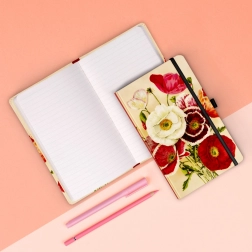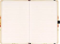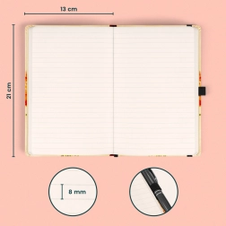 Notebook with hard covers from Kateřina Winterová's collection, ideal for all your ideas and notes. It contains 172 ruled pages on cream paper, and is equipped with a elastic band closure and a pocket for small items.