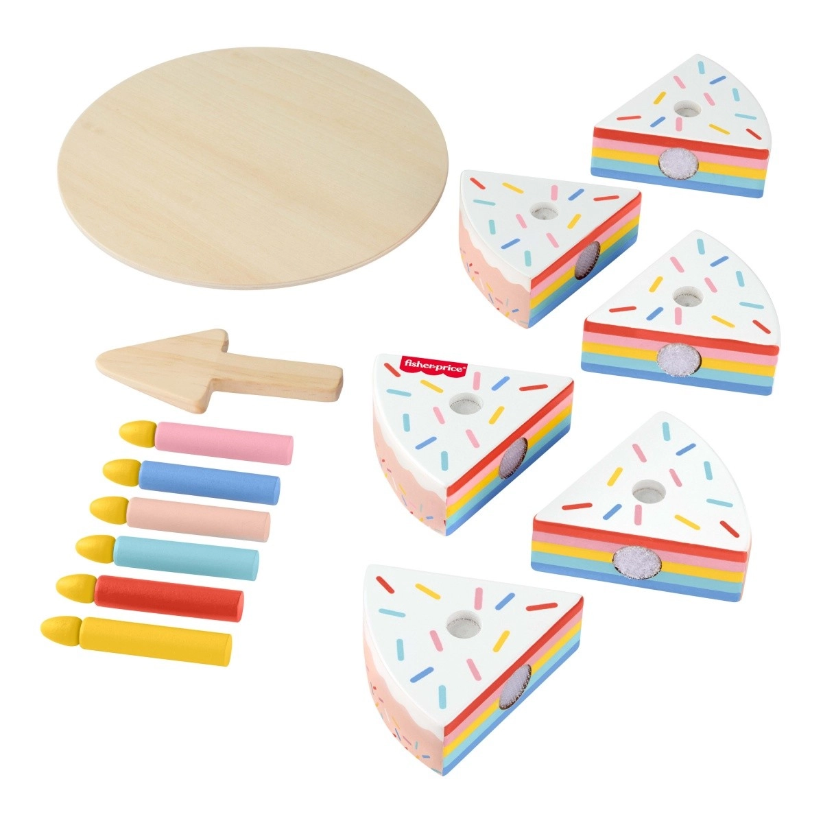 Make every day a celebration with this wooden birthday cake from Fisher-Price. The set includes 6 cake pieces, 6 candles, a tray, and a cake knife, bringing kids hours of fun with decorating, slicing, and serving.