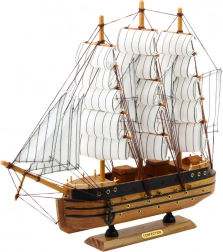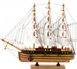 The model is an excellent choice for collectors of historical models or those seeking a stylish element for an interior in a vintage or classic style. Every detail has been meticulously crafted, including black and gold accents on the ship's hull. Hand-tied rigging adds to the authenticity and elegance of the entire unit.