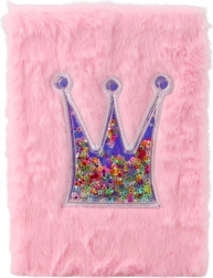 Embark on a journey of creativity with this charming pink A5 notebook. It can serve as a notepad, diary, or school notebook. At its center is a decorative crown filled with colorful star-shaped confetti, which can be moved around to create a more dynamic visual effect.