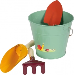 The tools include two shovels and one rake, perfect for planting, digging, or building sandcastles. The metal bucket is the perfect helper for carrying water, sand, or soil. Children can easily carry this set anywhere – to the garden, sandbox, or beach.
