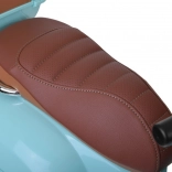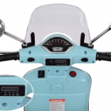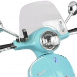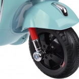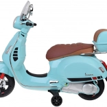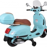 Young riders will love the elegant VESPA look with front badge, rear-view mirrors, and functional details. Stabilizing wheels help maintain balance, making the scooter suitable even for beginners. Power comes from two robust 12 V / 30 W motors fed by a pair of 6 V batteries for longer rides.