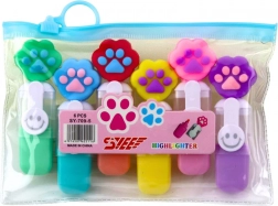 The highlighters are arranged in a practical, transparent case with dimensions of 16.5 x 10.5 x 2 cm, which makes it easy to carry and store them. The set includes 6 neon-colored highlighters, ideal for highlighting the most important information in notebooks, books, or diaries.