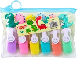 Set of Mini Highlighters with Dinosaur Clips in a Case, 6 pcs