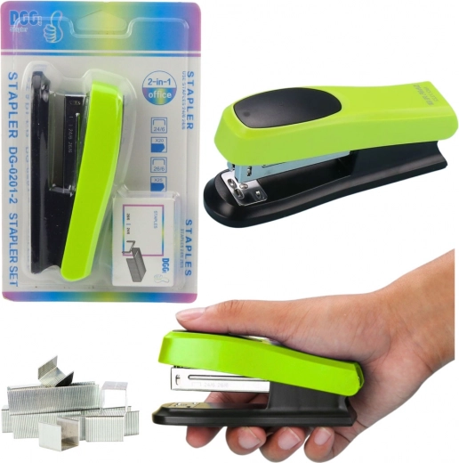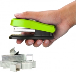 Functional and ready to use, this green office stapler with an included set of staples is ideal for everyday use in the office, school, or home. With its sturdy construction and comfortable handle, it ensures quick and efficient work.