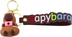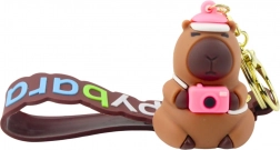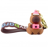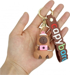 The keychain features a friendly capybara with a hat and a pink camera, carefully crafted from soft, flexible, and durable silicone. The material is pleasant to the touch and resistant to daily use. Complete with an easily attachable elastic hanging decoration with the colorful inscription “capybara” and a sturdy carabiner and classic ring. This makes the keychain functional and easy to attach.