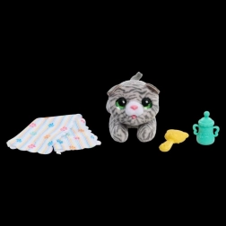 FurReal Newborn Plush Kitten is an adorable interactive pet that you will love! Caring for it is a joy, feed it with a bottle, soothe it with a pacifier, or rock it in your arms.