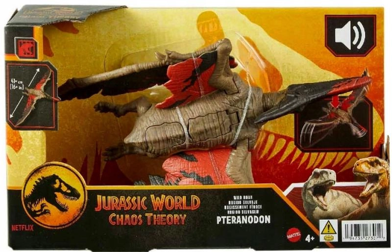 Take off into the world of JURASSIC WORLD with a realistic Pteranodon figure featuring articulated wings and jaws, sound effects, and a detailed skin texture. Press the button on its back to start the action—wing flapping, open mouth, and ferocious sounds for maximum play immersion. With AR experiences in the Jurassic World Play app using a DNA code, kids can extend play into virtual reality.