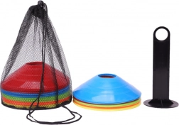 This professional set of 50 training cones is an ideal accessory for sports, recreational, and rehab training. It includes five distinctively colored cones, a sturdy stand, and a mesh bag for easy organization and transport.