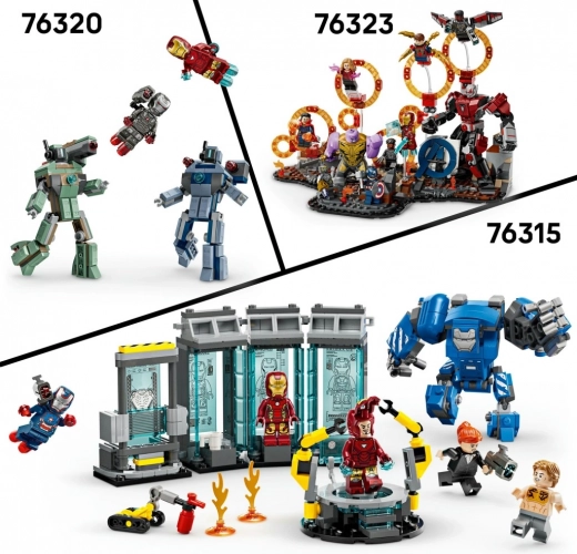 Relive an iconic MARVEL showdown with a cool set that combines large buildable figures and fan-favorite heroes. The posable IRON PATRIOT mech with 4 shooters and the fearsome Chitauri gorilla invite exciting clashes, while THOR, ROCKET, and four Chitauri minifigures expand play possibilities.