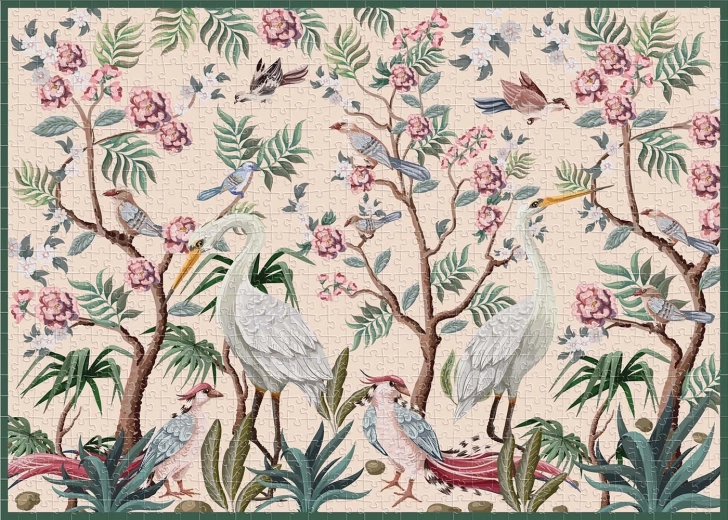 Discover the beauty of the mysterious garden with our 1000-piece puzzle, where birds weave their wings among blooming trees. Perfect for nature lovers and puzzle collectors.