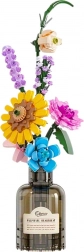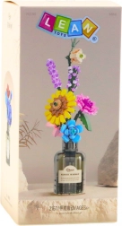 Introducing an original building set that allows you to create an impressive colorful bouquet full of diverse flowers. The main role is played by the sunflower, complemented by blue rose, purple lavender, and pastel carnations. This composition is an ideal decoration for summer and home environments.