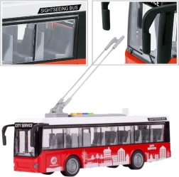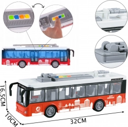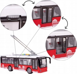 A realistic model of a city trolleybus from the WOOPIE brand will delight all young transport fans. It offers light and sound effects, opening doors, movable pantographs, and a friction drive for forward and backward motion. A great choice for creative play and learning about public transport.
