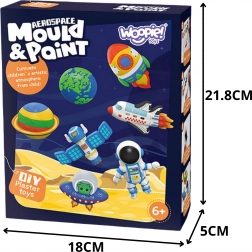 - Mold with space motifs, 2× plaster sachets, paint palette, 6 paints, 2× brushes, spatula, bowl, spoon, instructions