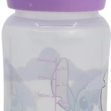 Practical anti-colic bottle with a Lilo & Stitch design for comfortable feeding of newborns. It offers a 240 ml capacity, a silicone nipple for natural sucking, and an integrated anti-colic system that reduces the risk of discomfort. It is BPA-free and complies with EN 14350.