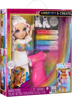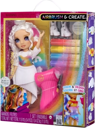 The Rainbow High Airbrush & Create doll is like a blank canvas for young designers. Using the included washable markers and airbrush applicator, you can easily create an original look – from soft gradients to bold patterns. You can wash off the finished design anytime and start again.