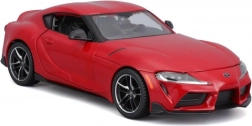 A realistic collectible model of the Toyota GR Supra in 1:24 scale that will delight both kids and adults. It features a metal body, finely crafted plastic details, and opening doors and hood. It looks great on a shelf and doubles as a stylish toy for everyday play.