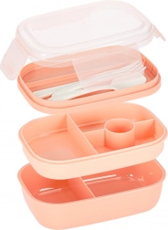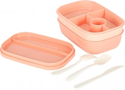 The box is made of high-quality BPA-free plastic. It can be washed in the dishwasher and heated in the microwave (without lid) up to 100 °C. The package also includes a practical cutlery set (spoon, fork, knife).