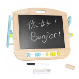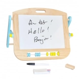 Encourage children’s creativity with this compact 2Kids Toys tabletop board. It offers double-sided use – on one side a magnetic dry-erase board, on the other a classic chalk surface. Includes a marker, chalks, and eraser plus a two-tone abacus for playful counting practice. Made from FSC-certified wood and compliant with European safety standards.