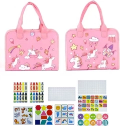 Discover the magic of fun and learning in one – the sensory busy book with a unicorn theme develops fine motor skills, logical thinking, focus, and sensory perception. Thanks to a variety of activities such as buttons, buckles, zippers, hook-and-loop fasteners, and shoelaces, it’s ideal for little explorers. It is soft and lightweight, great for travel and at home, and perfect as a gift for children aged 3 and up.