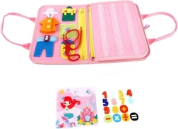 • Varied activities – buttons, buckles, zippers, hook-and-loop fasteners, laces, and more elements to train grip and independence.