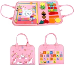 Discover the magic of learning through play with this sensory busy book featuring a unicorn theme, bringing children both fun and fine motor skill development. The book includes buttons, buckles, zippers, hook-and-loop fasteners, and laces, supporting logical thinking, focus, and sensory perception. It is soft, lightweight, and perfect as a gift for children aged 3 and up.