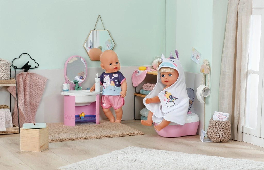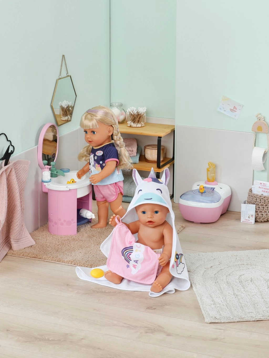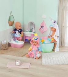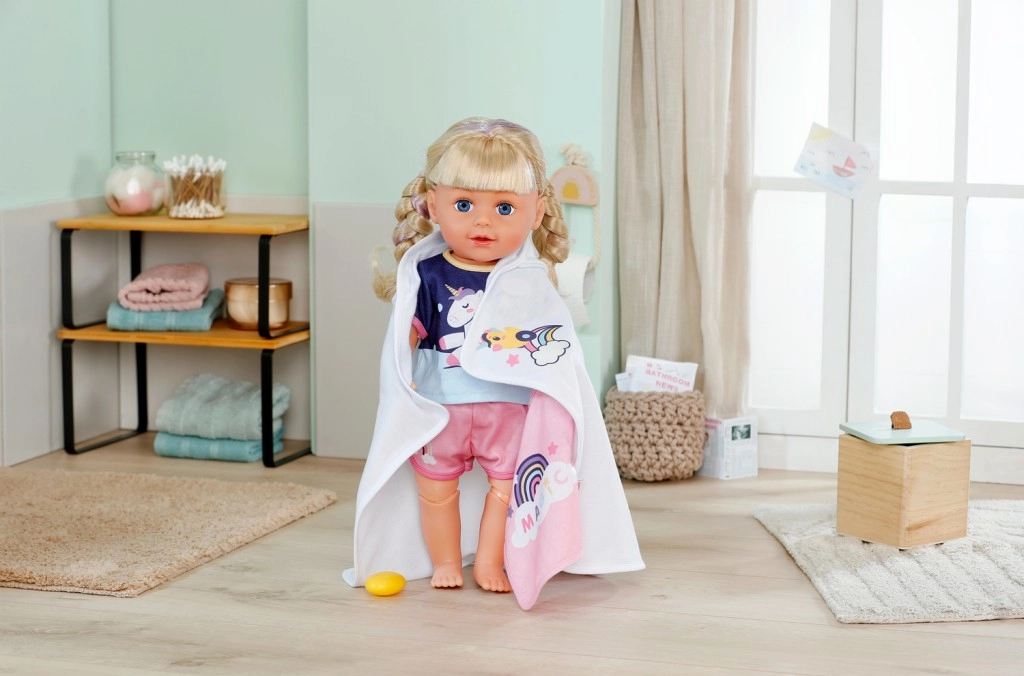 The towels are made from a soft and pleasant material that is gentle on little hands and favorite dolls alike. The set is compatible with dolls sized 36 cm and 43 cm, making it a great addition to your accessories for everyday play.