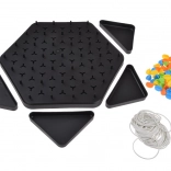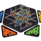 A clever and gripping strategy game for kids and adults where you stretch rubber bands between pegs to create and claim triangles. The player who claims the most wins. The game develops strategic thinking, spatial planning, and fine motor skills, and is ideal for 2–4 players ages 6+.