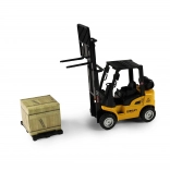 A realistic forklift for little builders brings fun, dynamic play thanks to the pull-back drive. The model is about 13 cm long, has a movable fork, and combines metal and plastic parts for greater durability and long life.