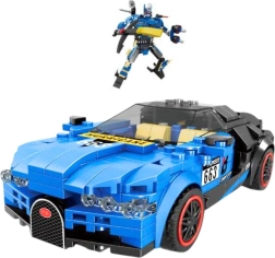 Discover fun and learning in one. This 2-in-1 set allows you to build a dynamic racing car inspired by luxury models or an impressive robot with a futuristic look. The car features a pull-back mechanism — pull it back, release, and the vehicle shoots forward for action-packed play.