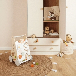 The Bieco wooden baby walker with a forest animals motif is a great companion for children from 12 months. Thanks to its stable construction and comfortable handle, it provides support while learning to walk, while the varied activities motivate play and exploration. The stylish design and quality workmanship ensure safe, long-lasting use.