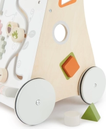 The multifunctional play panel develops fine motor skills, hand–eye coordination and logical thinking. Children can try their first sorting and shape recognition, practice dexterity and learn the basics of cause and effect.
