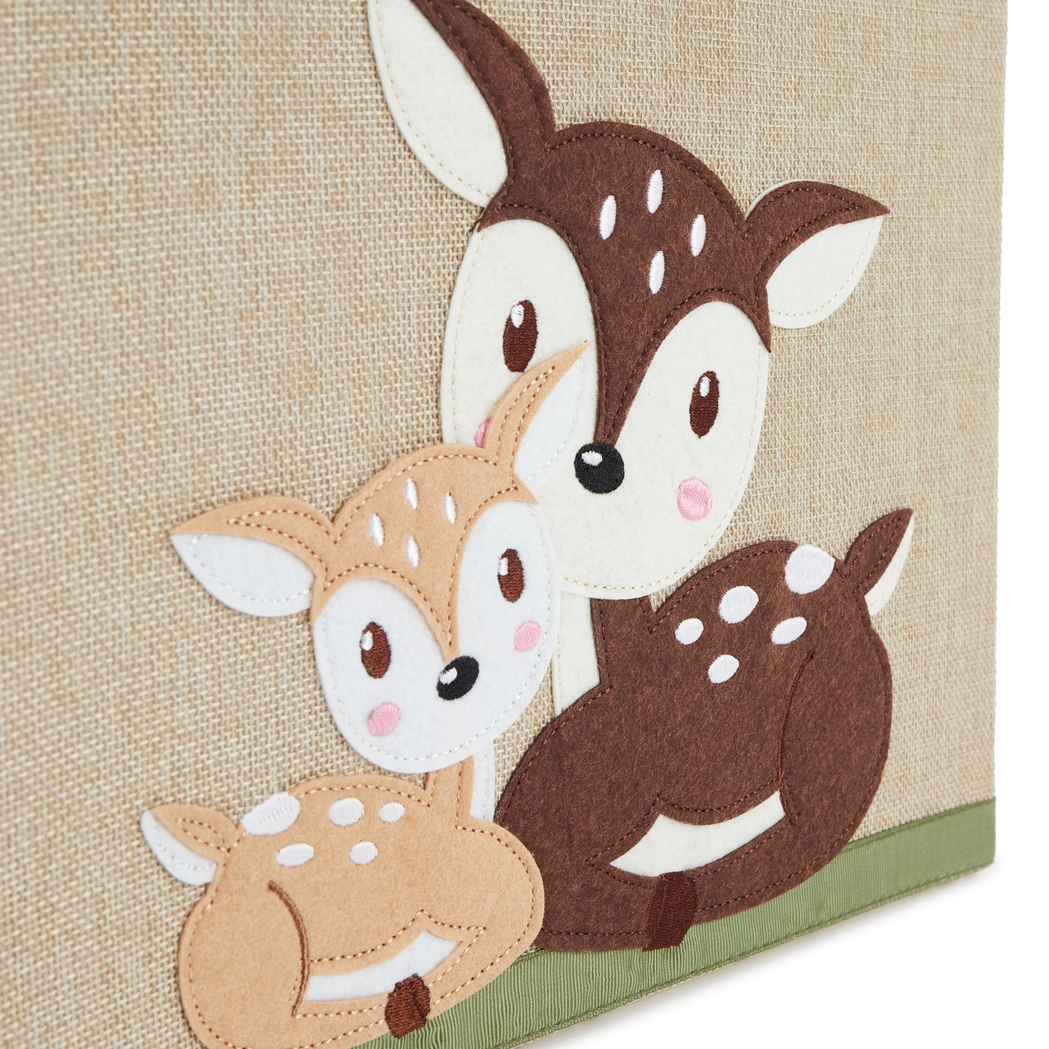 Bring order and style to the kids’ room with the Bieco storage box featuring a fawn motif. With dimensions of 32 × 32 × 32 cm, it fits perfectly into IKEA Kallax shelves, has practical side handles for easy carrying, and a capacity of approx. 33 liters. The box can be folded flat, offers plenty of space for toys, clothes, and books, and its surface is easy to clean with a damp cloth and mild soap.