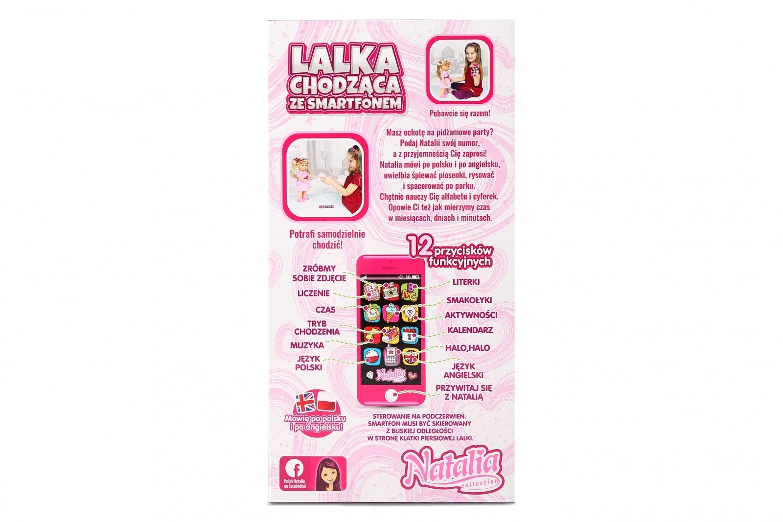 Discover a magical interactive toy – the NATALIA walking doll with a smartphone, 41 cm tall. The doll moves on her own, speak Czech and English (language switching), and responds to an IR remote shaped like a smartphone. Kids will enjoy learning numbers, time, and the alphabet, cheerful melodies, and phone call simulation. Ideal for developing fine motor skills, speech, and imagination.