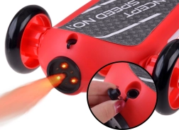 A fun three-wheel electric scooter for kids with safe stability, striking LED lighting, DISCO-style music, and an impressive steam effect. Easy button controls, a non-slip deck, and comfortable rubber grips make this scooter a perfect gift for children aged 3 and up.