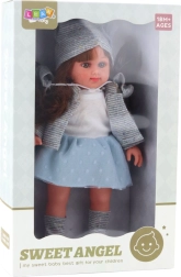 - SWEET ANGEL doll 36.5 cm; stylish outfit (dress, cardigan, cap, shoes)