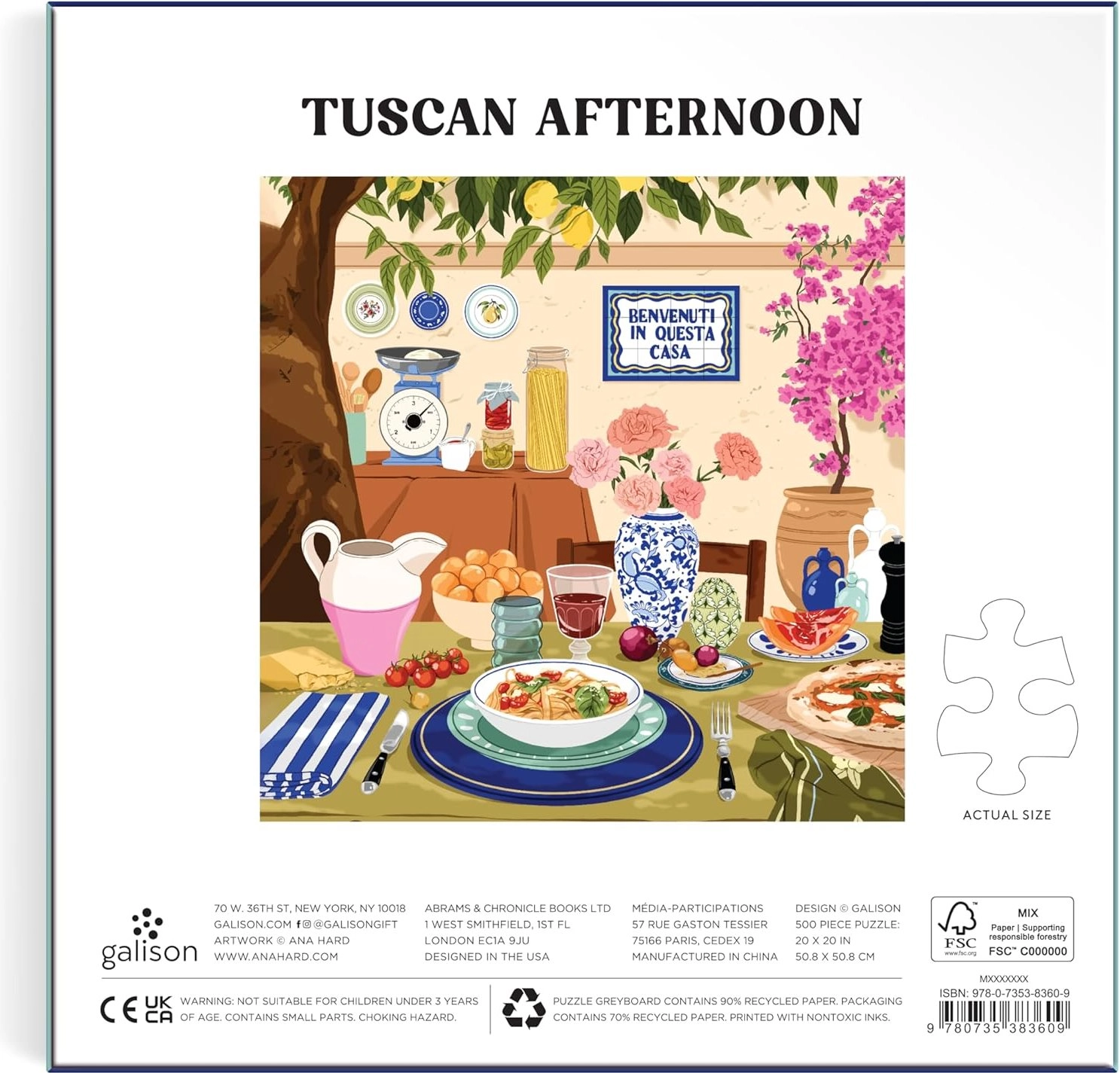 Enjoy a relaxing time assembling a high‑quality square puzzle featuring the motif Afternoon in Tuscany. The box includes 500 pieces and a handy reference poster to make assembly easier. Once completed, the puzzle measures approximately 51 × 51 cm.