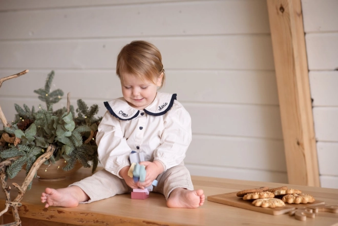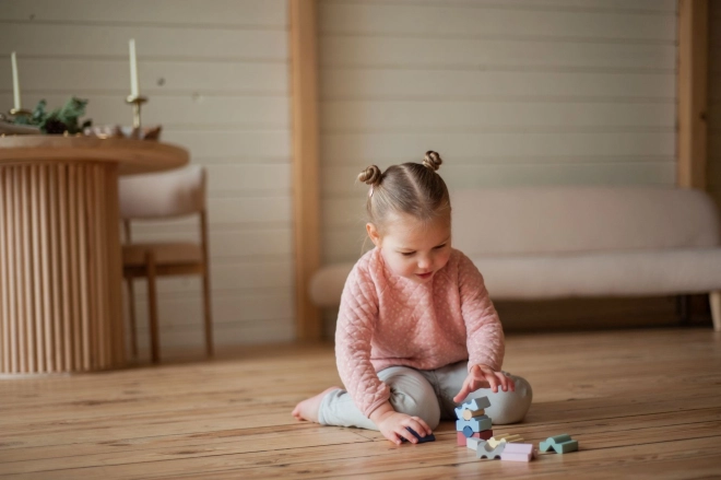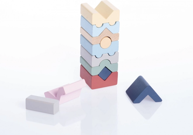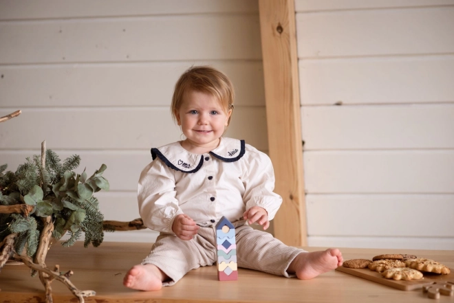 The Pastel Tower XI by Cubika is a well-designed wooden stacking toy with 12 pieces in soft pastel shades. Children thread and stack the pieces so they fit together correctly, creating a stable 16 cm tower. Thanks to the precisely finished wood, it is pleasant to handle and safe for small hands.