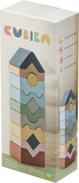 Discover the high‑quality Cubika Pastel Tower XI wooden stacking toy with 12 colorful pieces that children stack into a stable tower. Made from eco-friendly maple and beech and colored with safe water-based paints, it supports sensorimotor skills, logical thinking, and creativity. The assembled tower height is 16 cm. Suitable from 18 months, made in Europe, complies with TÜV and EN 71.