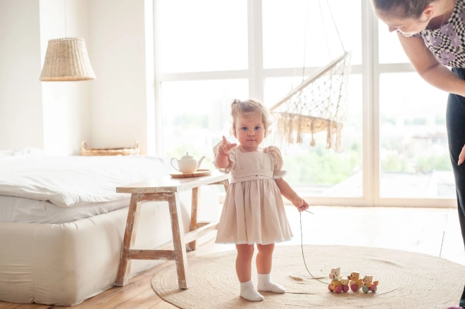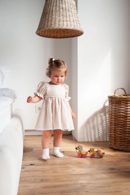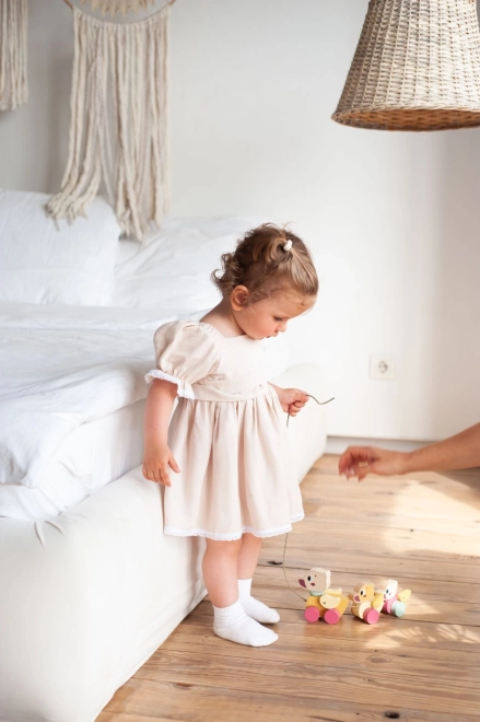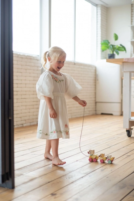 The toy is designed to naturally develop children’s skills and bring joy every day. With an approximately 60 cm long string, pulling is comfortable even for smaller children.