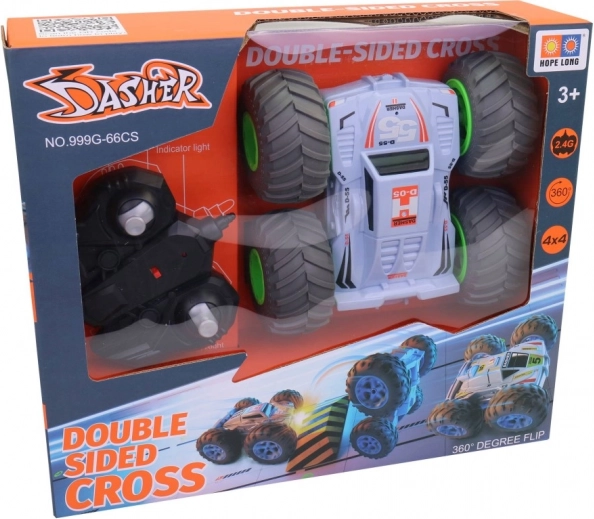 A fun remote control car that can flip quickly and perform action-packed tricks. Compact size 15 cm, reliable 2.4 GHz interference-free control, and durable plastic build for kids aged 3+.