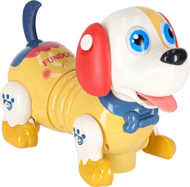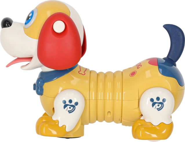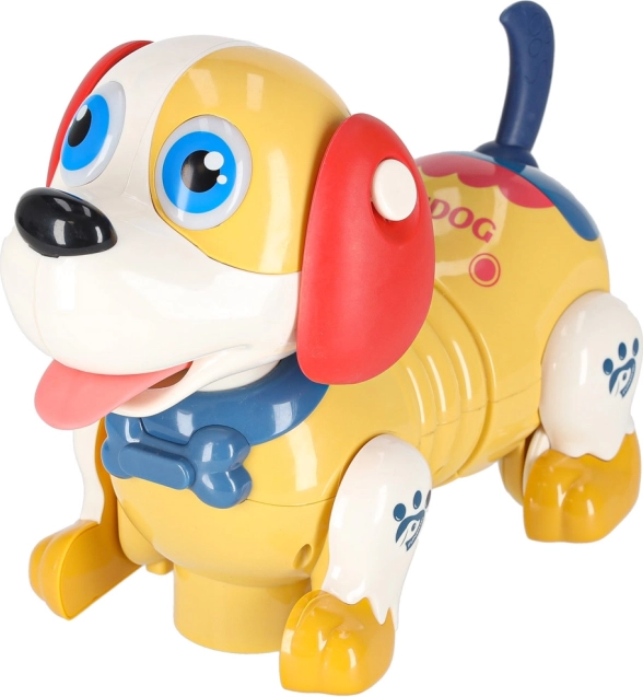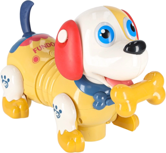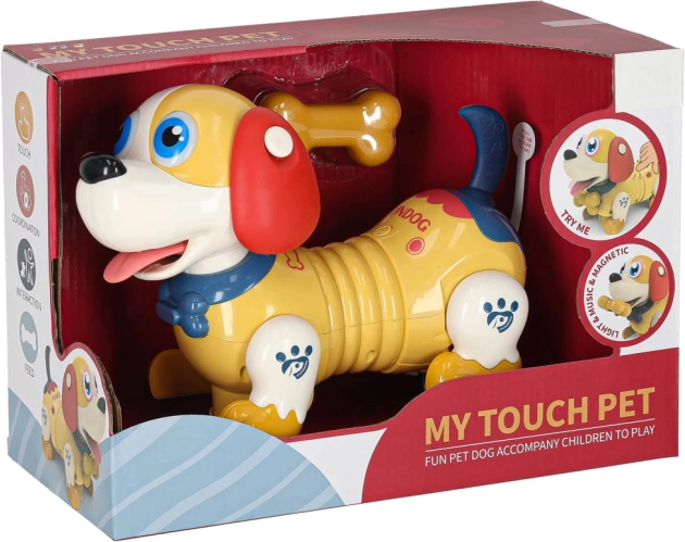 A cute interactive puppy with a magnetic bone that reacts to touch, speaks English, plays melodies, and lights up its eyes. Side-to-side movement and simple controls help develop fine motor skills and sensory abilities. Includes a magnetic bone, light effects, music, and touch functions – great fun for children aged 3 and up.