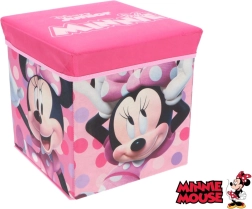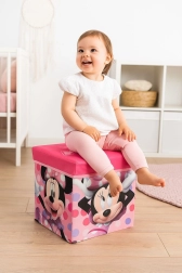 Enhance the kids' room with a practical and fun piece featuring MINNIE MOUSE. This folding storage box with a sturdy lid is perfect not only for storing toys, books, or building blocks, but also serves as a comfortable seating ottoman. Thanks to its cube shape and standard dimensions, it fits most wooden organizers and shelves.