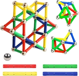 This educational magnetic set supports creativity, logical and spatial thinking, and fine motor skills. Thanks to the variety of pieces, children can easily create stable models, from basic shapes to complex 3D structures. Practical packaging makes it easy to carry and store.